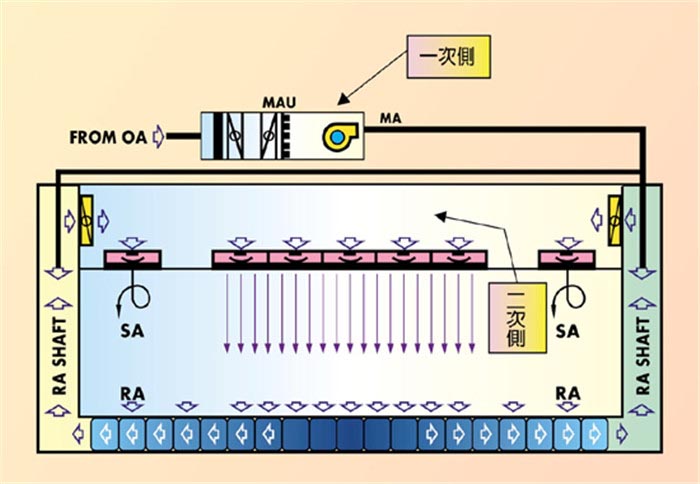无尘车间原理图 无尘车间的原理是通过三级过滤及送风量控制,出入无尘车间管理等手段使无尘车间达到相应的级别;